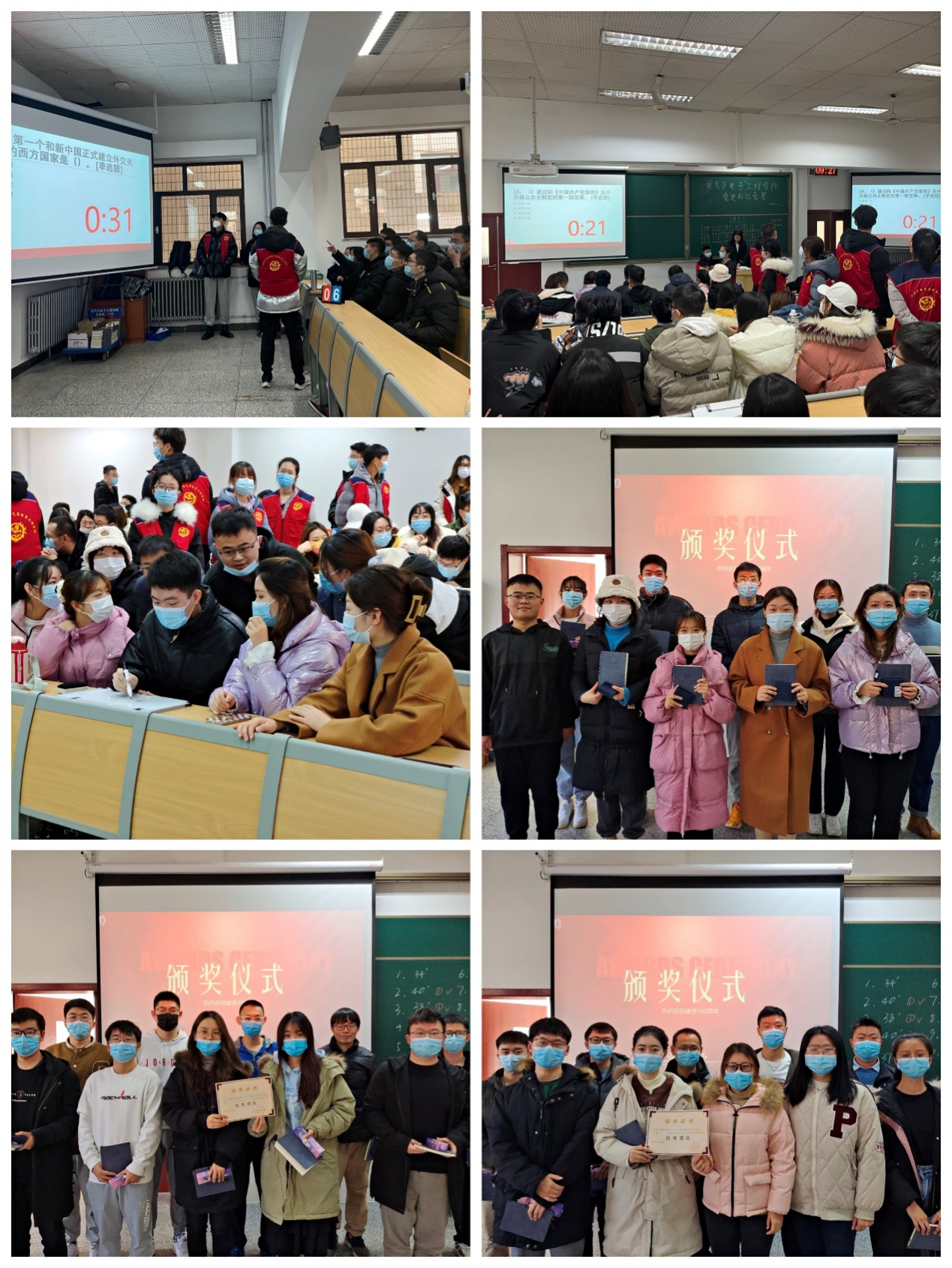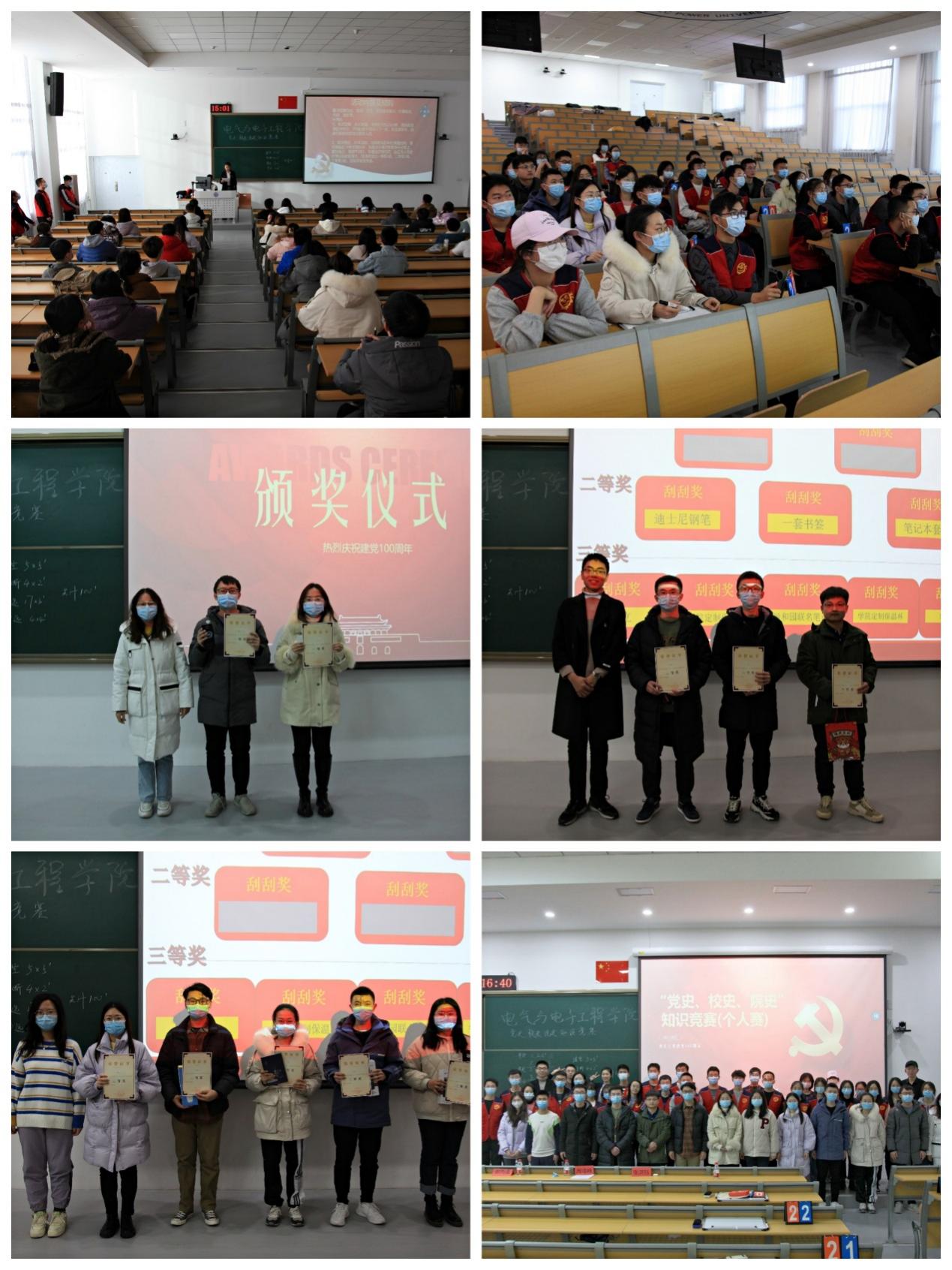 百年风雨兼程,百年砥砺前行,通过百名学生知识竞赛,以赛促学、以学促行,加深学生对党史的理解,同时引导学生用实际行动做到学党史、悟思想。此次竞赛推动学院形成了党史学习教育新热潮,也以此活动为契机,继续教育引导学生学党史,学校史,学院史,不忘初心,牢记使命,做勇担时代使命的电院新人!