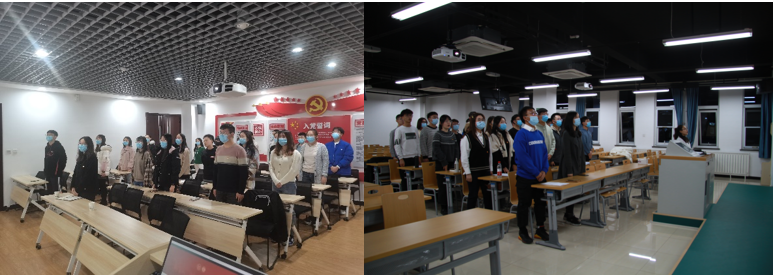 最后,在研电2101党支书刘宇翔的领誓下,两支部成员一同重温入党誓词,不忘初心,砥砺前行!活动在《国际歌》的歌声中圆满结束。