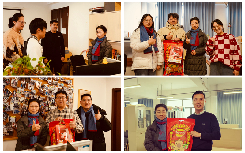 在主楼A座实验室,卜春梅走访了在工位工作的老师和研究生们,了解大家的科研安排和假期规划,关心他们春节的生活安排、与导师沟通交流的情况,勉励师生们涵养家国天下深厚情怀,树立报国强国远大志向。春节将至,卜春梅为留校学生送上学院精心准备的礼物,祝愿大家多喜乐,长安宁,度过一个平安温暖的春节假期。