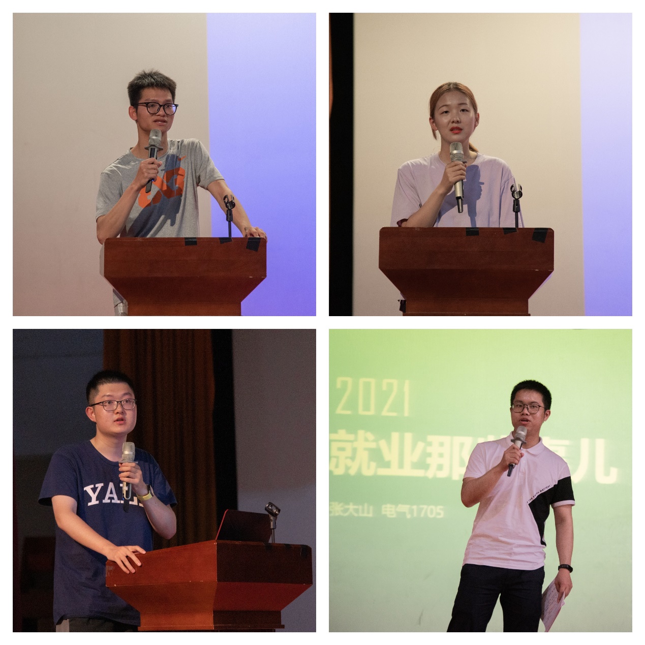 倪孟贤通过分享了自己的考研历程,指出信息、判断、行动和结果四个因素能否形成良性循环在考研路上是非常重要的。他和同学们谈到目前能源电力行业在不断革新,每名同学都大有可为,并通过分享自己大学期间的经历嘱咐同学们珍惜学校提供的平台和机会去丰满自己,同时要锻炼创新和独立思考的能力。同时倪学长建议同学们不要将视野仅仅局限在考研过程中,更重视意识培养与终身学习。张大山则从就业角度为同学们展开介绍,从能源电力行业、生活环境、职业发展的角度进行深度解读剖析,分享获取就业信息的主要渠道与衡量就业优劣的主要维度,让在场同学们对就业有了清晰的把握,也对未来生活有了更全面的认识。