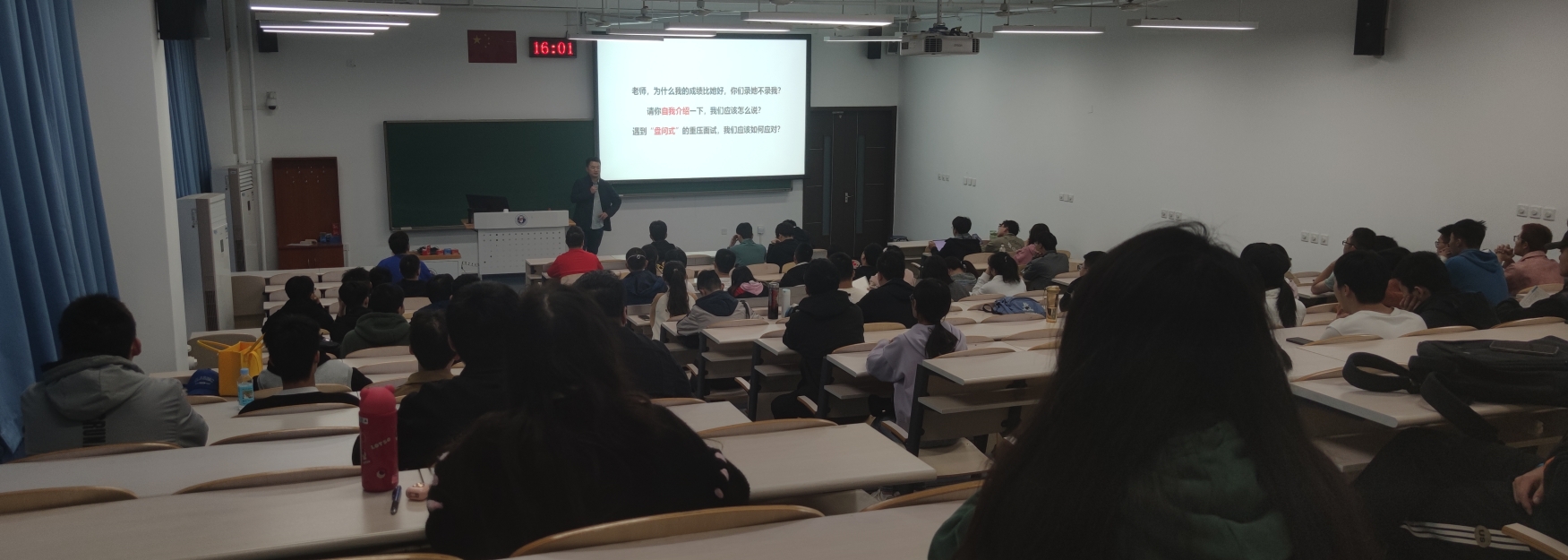 针对当前入校招聘单位多、学生简历和面试中产生的重点问题,聚焦毕业生现阶段需求,王栋梁主要从三个方面向同学们讲解了就业过程的要点。一是要正确把握就业形势,认清用人单位进校招聘提前的态势,把握秋季招聘黄金期,多听宣讲多投简历,尽早落实毕业去向;二是简历内容撰写要聚焦岗位要求,以多途径了解岗位需求,实现简历中的个人能力和经历充分贴合目标岗位;三是明确面试实质和重要性,要做到面试早准备、早演练,将自身的岗位胜任能力和对企业的贡献优势充分展示在面试过程中。王栋梁表示,不畏艰难才能行稳致远,希望学院全体2024届毕业生规划得当,做足准备,以必胜的信心决心积极行动,尽早实现高质量就业。