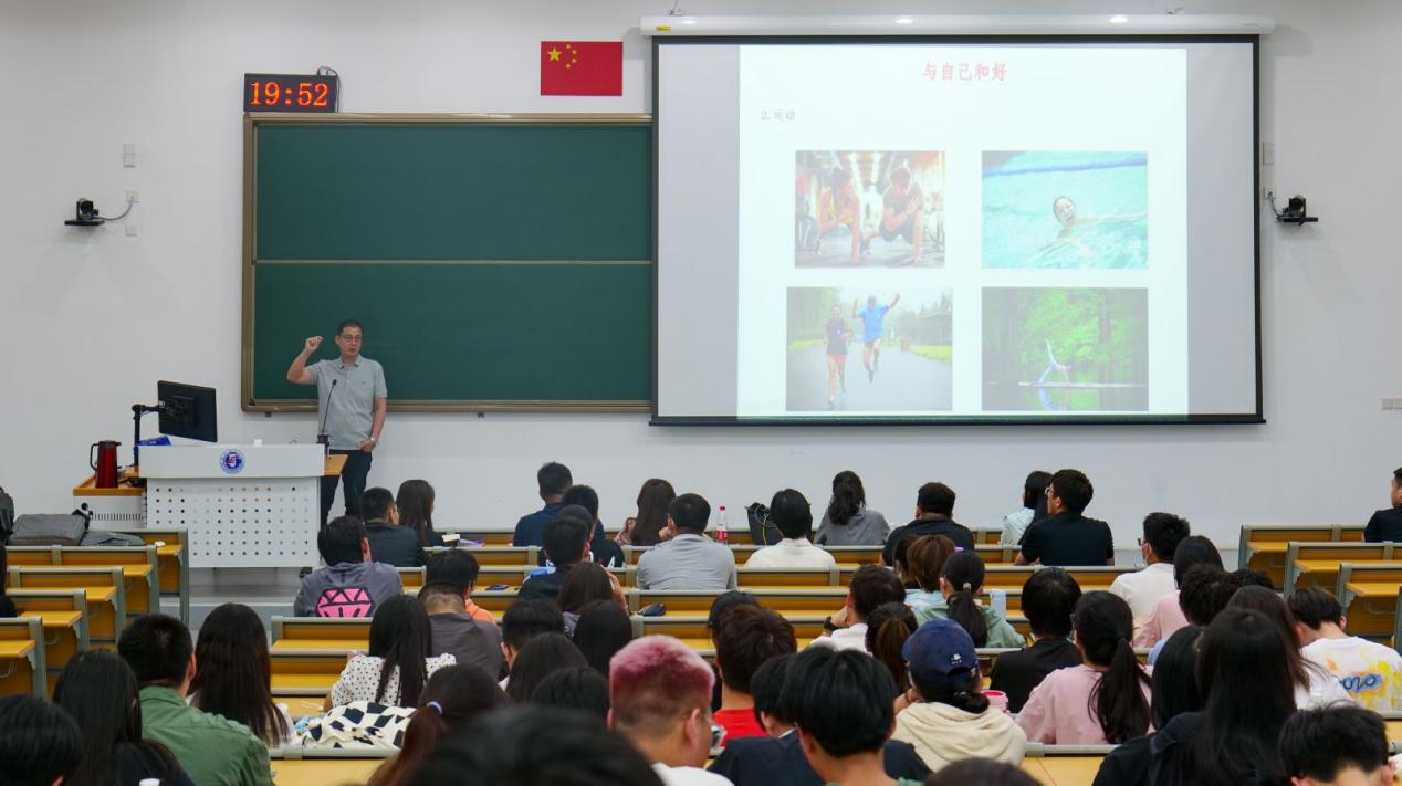 胡邓教授结合自身旅行经历以及在人大的校园日常,从情绪简说、情绪管理和常用方法三方面,向大家分享了“与自己和好”的秘密。面对复杂的情绪,胡教授带领同学们从另一个角度解读:愤怒说明你拥有了力量;感到悲伤表示你在接纳分离;焦虑则展现出你在未雨绸缪;痛苦意味着你决心要改变;恐惧到来时,我们选择3F策略。不止是恐惧,是理解了情绪并没有好坏之分,要悦纳自己的情绪。大学生涯中总会遇到很多的问题,如何才能“与自己和好”?除了情感宣泄与运动,胡教授教我们偶尔做一回“小市民”——小酌怡情、打牌耐挫、追剧共情。同时也要管理好自己的饮食,生活中的改变往往从点滴开始。