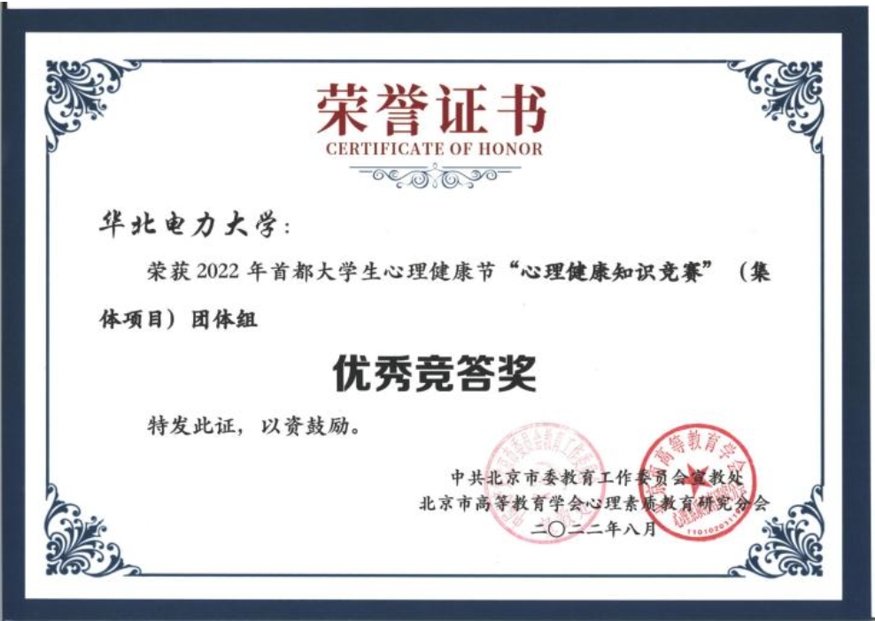 我院知心工作室助力华电学生在首都大学生心理健康节荣获佳绩