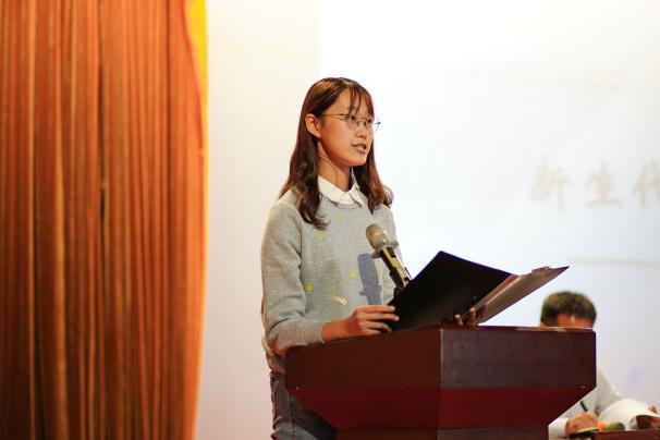 电气类2110班李明芯同学作为新生代表发言。无处不在的电的应用、就电力专业知识侃侃而谈的学姐使她决心来到华电探寻电力世界的奥秘。她表示,成为华电人、成为电院一份子,感到十分骄傲,作为电院学子定不负众望、不负青春。