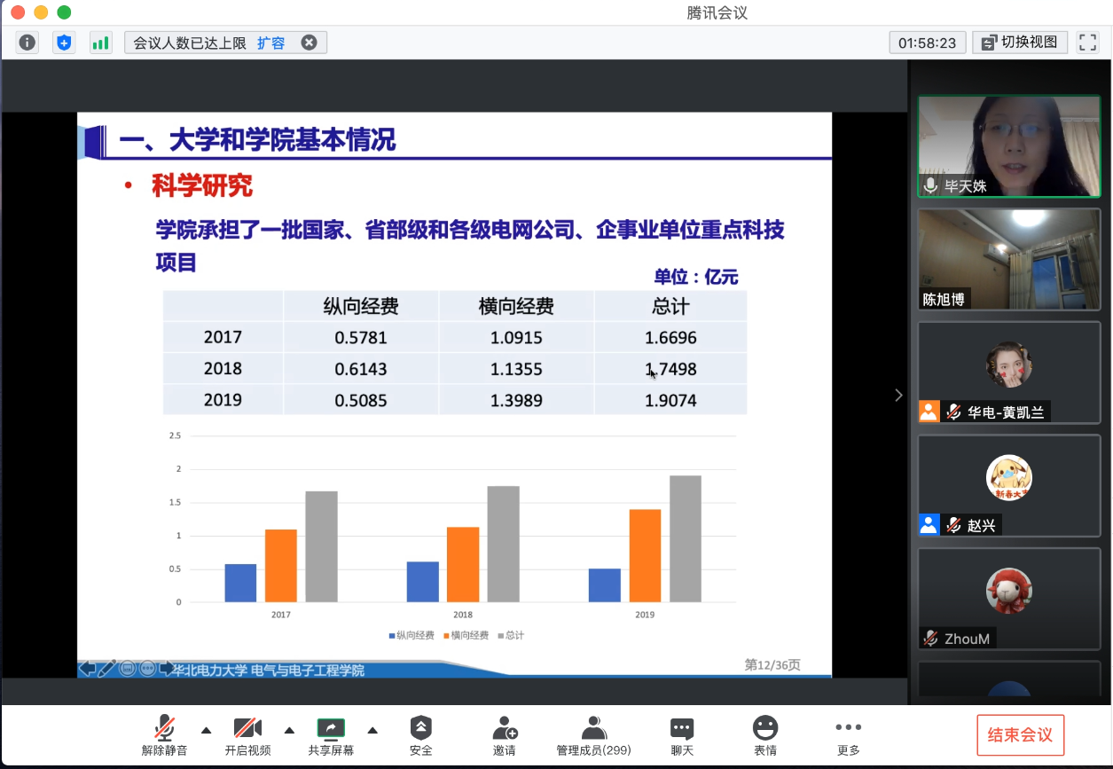 为进一步做好2021级硕士免试推荐研究生招生宣传工作,多渠道全方位吸引优质生源,为学校“双一流”建设提供强有力的人才支撑,beat365在线体育官网登录入口积极谋划,主动作为,将推出一系列线上线下活动,积极搭建起校内外导师与学生沟通交流的平台。2020年6月14日晚,首场线上推免研究生招生宣传活动以腾讯会议形式举行,活动由大学副校长、电气学院院长毕天姝主讲,并邀请青年教师代表和学生代表分别分享个人成长经历和学习经验,与校内外优秀学生进行线上交流。活动由学院副院长齐磊主持,学院党委副书记宫凯、副院长徐衍会、校内外优秀学生近300人共同参加了本次宣讲。