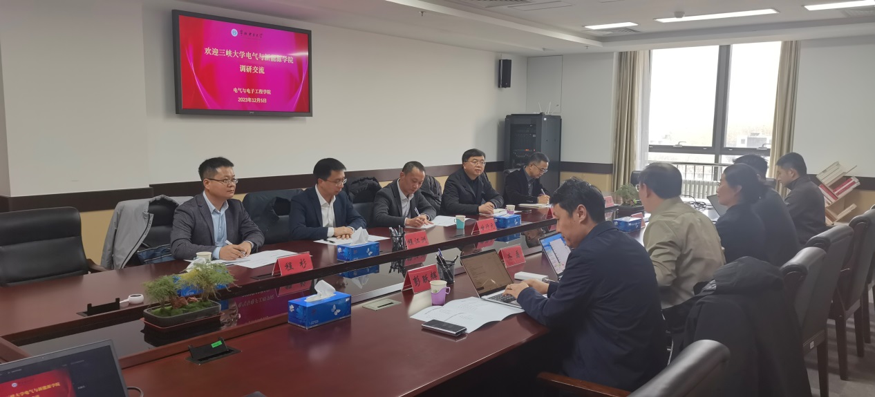 12月5日上午,三峡大学电气与新能源学院党委书记兼副院长甘行元等一行五人到访beat365在线体育官网登录入口调研交流。学院党委书记卜春梅、副院长(主持工作)齐磊、党委副书记王栋梁、新能源电力系统全国重点实验室副主任彭跃辉、院长助理贾科参加接待。