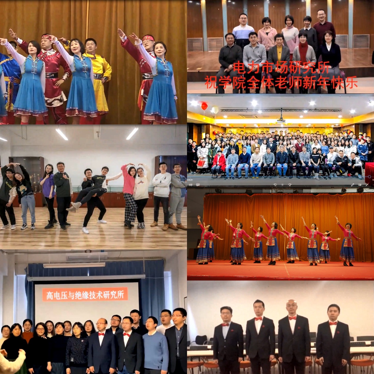 表彰大会结束后,2021年网络新春联欢会在喜庆的氛围中拉开帷幕。学院全体教职员工踊跃参与,各个研究所和文体协会提前精心录制了合唱、舞蹈、瑜伽、太极、朗诵等形式多样的文艺节目。歌声激昂滂湃、舞姿律动优美、瑜伽舒展和谐、太极张弛有度、朗诵深情感人,一个个精彩的节目展现了电气学院教职员工团结一心、积极向上、和谐友爱的精神风貌。精彩纷呈的节目将联欢会推向一个又一个高潮,直播弹幕中鼓掌、鲜花、喝彩络绎不绝、热闹非凡,仿佛置身现场一般。
