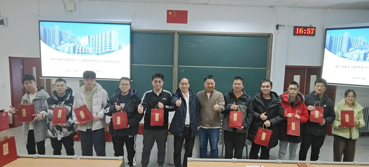 在考研冲刺的关键阶段,为缓解电院学子紧张焦虑的情绪,助力学生及时调整心态,树立坚定信心,beat365在线体育官网登录入口于12月4日在教一06阶梯教室成功举办2025届考研冲刺经验分享会暨慰问会。学院副院长齐磊(主持工作)、学院党委副书记王栋梁、本科2021级辅导员张欣烨、孙伟,研究生优秀学生代表以及考研学生代表参与此次会议。