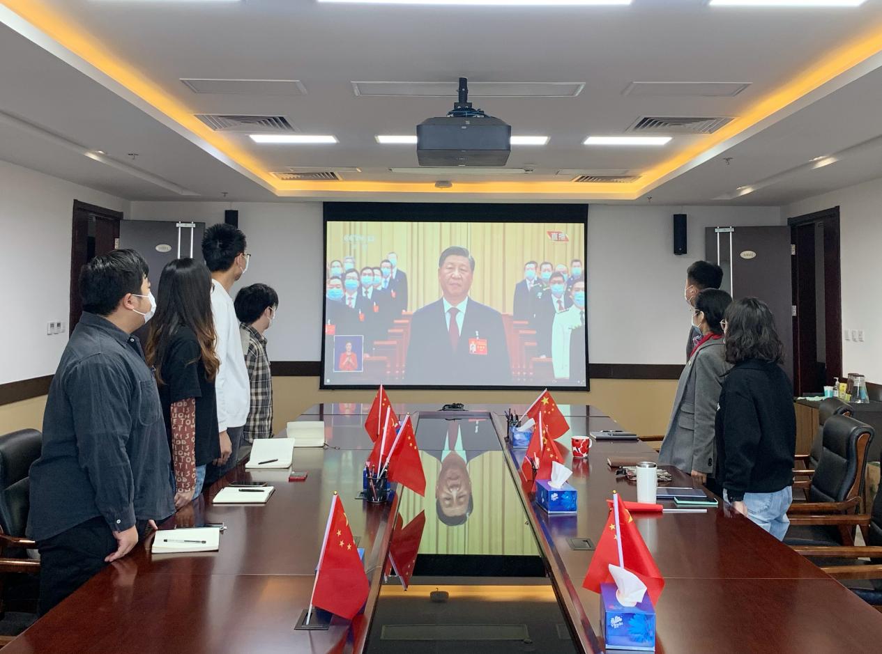 在主A601,beat365在线体育官网登录入口当日值班老师集体观看了开幕会直播。全体人员认真学习二十大报告,了解了十年来,党和国家事业取得的历史性成就、发生的历史性变革,以及未来祖国的发展蓝图,并就报告中的新提法、新思想进行探讨和交流,深刻领会报告内涵与意义。