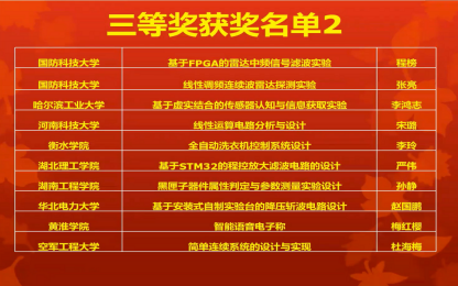 5月28日-29日,第九届全国电工电子基础课程实验教学案例设计竞赛(鼎阳杯)在北京信息科技大学健翔桥校区举行,beat365在线体育官网登录入口共有3项作品入围,最终获得一等奖2项,三等奖1项,获得一等奖的数量位居全国前茅。