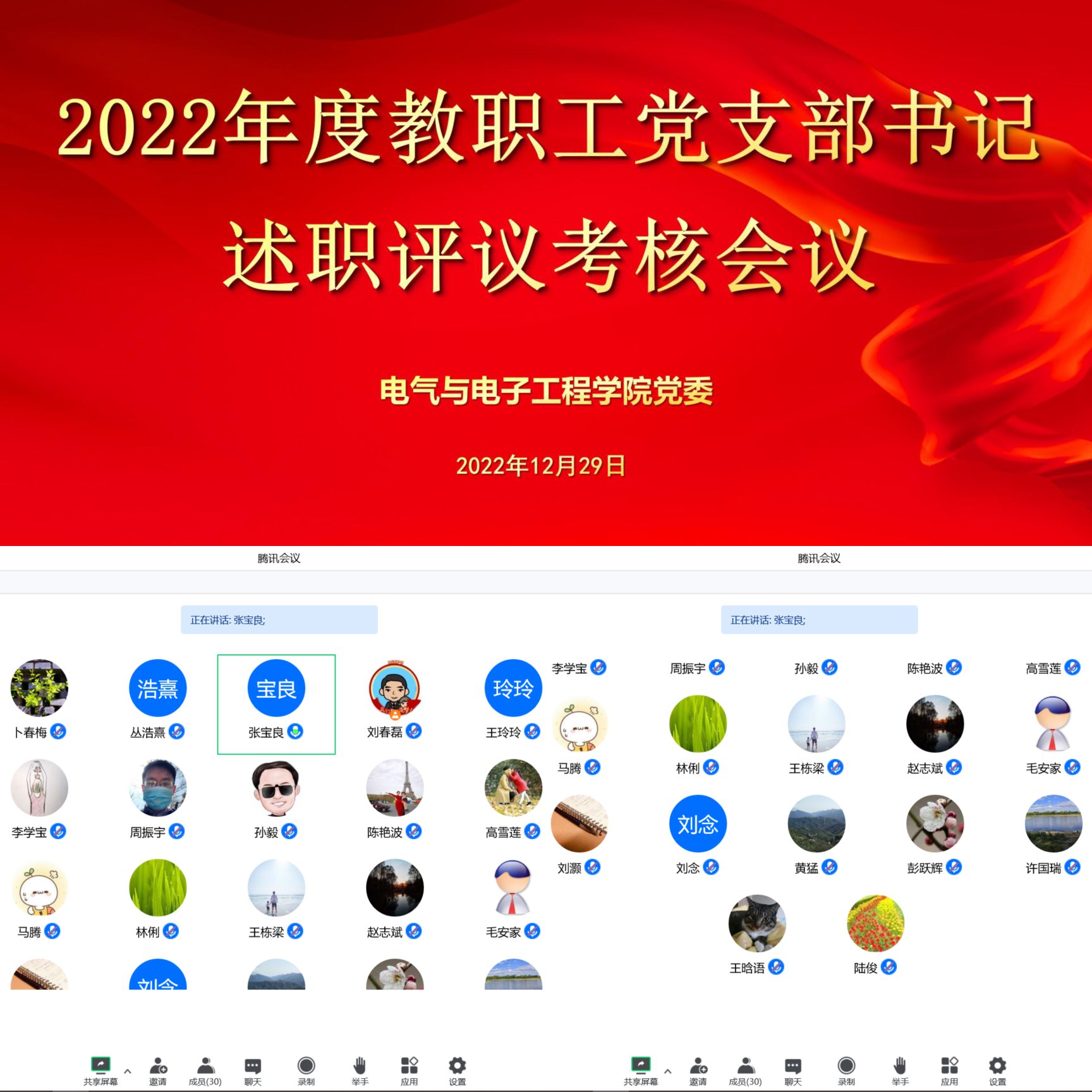 为深入贯彻落实党的二十大精神,进一步巩固教育部党组巡视、校内巡察整改转化提升效果,根据学校《关于开展2022年度教职工党支部书记述职评议考核工作的通知》的有关要求,结合《beat365在线体育官网登录入口2022年度教职工党支部书记述职评议考核工作方案》的具体安排,12月29日beat365在线体育官网登录入口党委召开了教职工党支部书记述职评议考核会,学院党委书记卜春梅任组长、党委委员、领导班子成员、学院团委书记、分工会副主席、教师代表等学院全体考核小组成员出席会议并担任评委,会议由组织员张宝良处长主持。