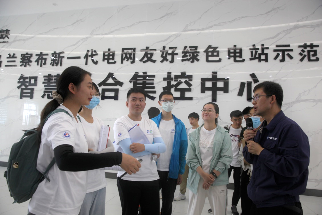 在实地学习调研中,三峡乌兰察布新一代并网友好型绿色电站项目方负责人带领实践团成员前往储能场站、风力发电区、太阳能光伏区等,学习了解示范工程的先进技术,了解项目运行的实际情况。在4号电站,实践团在专业人员的介绍下知晓了整座电站的工作原理,见到了以集装箱为单位的核心储能区域,并深入内部学习“集中化、模块化、先进化”电能存储的工作流程。