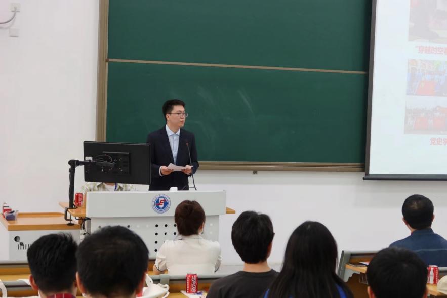 会上,双百班学员王兆霖做双百班建设汇报。他表示,两年来,双百班以“党支部+双百小班”模式引领带动各个双百小班分别突出德、智、体、美、劳的定位与优势,开展一系列精品活动,在强化思想政治引领上打头阵,在破解低年级学生党员发展难题上勇探索,在面向国家重大需求、践行服务“双碳”战略使命上展担当。