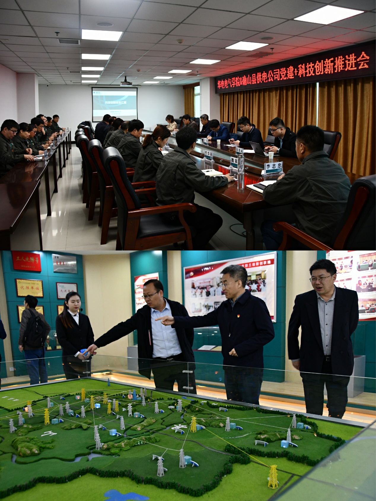 随后,学院调研团与国网确山县供电公司党委举行党建及科技创新工作推进会,国网驻马店市供电公司互联网部主任李明明、互联网部专责闫娇等市公司代表,国网确山县供电公司总经理、党委副书记张华伟,党委书记、副总经理张磊光等相关人员出席活动。双方各自介绍了党建与业务情况,并就结对共建与科研项目合作等进行深入交流。国网确山县供电公司对学院调研团一行表示热烈欢迎,对学院心系确山、真情帮扶的有力行动表示感谢。电气学院正处级组织员张宝良表示,beat365在线体育官网登录入口此行是按照大学党委工作部署,切实落实周坚书记、杨勇平校长关于校地双方统筹推进定点扶贫和乡村振兴工作重要指示的一次专项行动,将充分发挥学院的专业、人才、技术优势,精准对接当地供电局和村庄实际需求,开展“电亮确山乡村振兴”党建共建专项行动,为巩固和拓展确山县脱贫攻坚成果,推进大学定点扶贫工作与确山县乡村振兴有效衔接提供坚强支撑。曾博、陈艳波、唐志国等还就“基于边缘计算与AI技术的变压器寿命预测及故障预警系统的研究与应用”等多个科技项目与确山县供电公司参会人员交流研讨,达成了初步合作意向。