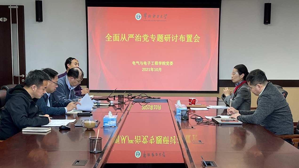 在全面从严治党专题研讨布置会上,会议指出要强化政治担当,切实扛起全面从严治党“两个责任”,切实推进全面从严治党向纵深发展、向基层延伸。会上,集体学习了学校《关于开展各二级单位党政主要负责人向校纪委述责工作的通知》的相关要求,进一步明确了从严治党的工作重点,集体学习了《关于印发的通知》(华电党〔2020〕23 号)文件中“二级党组织责任重点内容清单”和“班子成员责任重点内容清单”。结合学院工作实际,会上重点讨论了全面从严治党工作的重点内容、关键环节和制度机制。