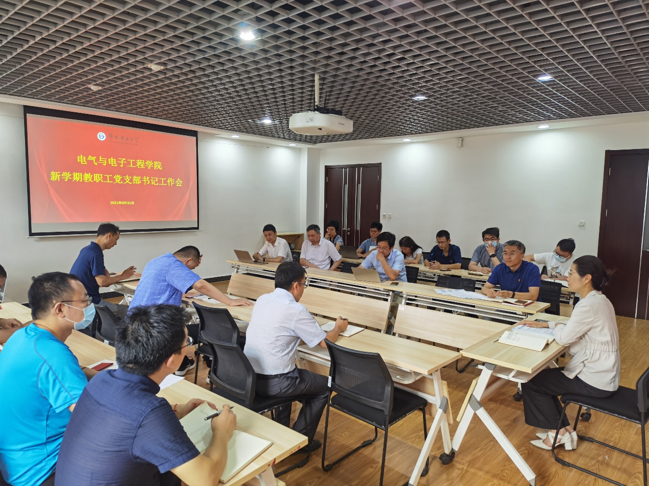 beat·365在线体育(中国)官方网站 - 登录入口 为落实学校党委2021年秋季学期工作部署,持续加强基层党支部建设,在常态化疫情防控下持续提高党支部建设质量,8月31日下午,beat365在线体育官网登录入口在主楼A631会议室召开新学期教工党支部书记工作会。学院党委书记卜春梅、正处级组织员张宝良、学院党政办公室主任刘春磊以及各教工党支部书记参加会议。会议由卜春梅主持。