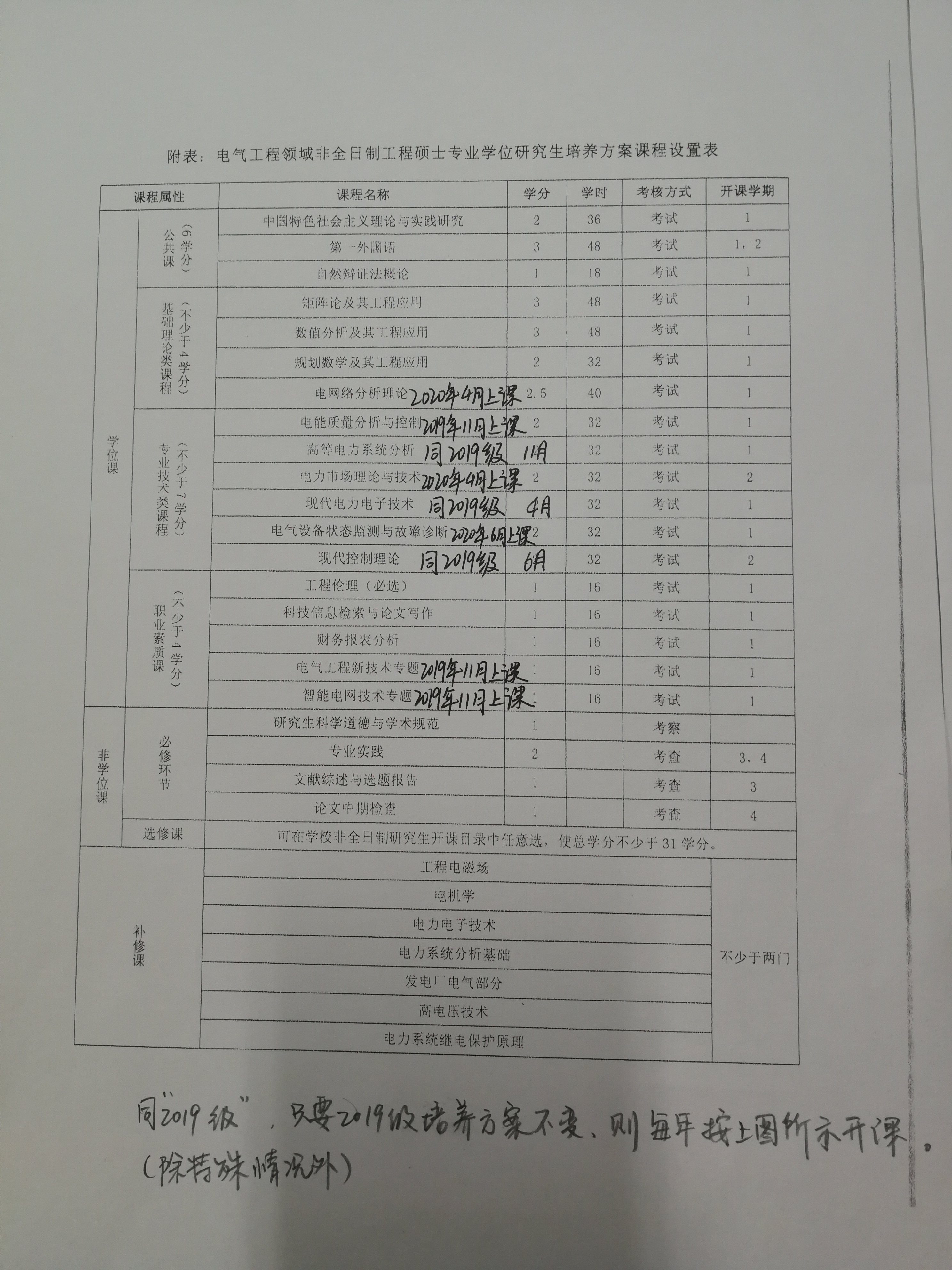 (2)电气工程专业,与2019级课程名称,不同的专业课,按照网站针对老生(2013-2018级)的上课通知,找到需要的课程名称和时间上课。